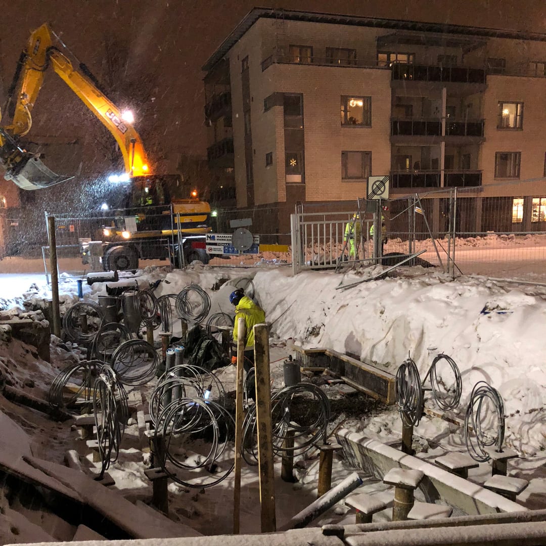 Tomi: Energiapaalut ovat osa rakennuksen perustaa ja sijaitsevat näin ollen usein rakennuksen alla. Talvella kun lämmitystehon tarve on suurimmillaan ja ulkoilma kylmimmillään, suojaa rakennus maata viilenemiseltä. Etenkin suurten rakennusmassojen kohdalla eristävä vaikutus on merkittävä. Paalujen pituuden vaikutus huomioidaan järjestelmän mitoituksessa, ja lähtökohtana on että maaperän lämpötilavaihtelu pysyy parin asteen haarukassa.