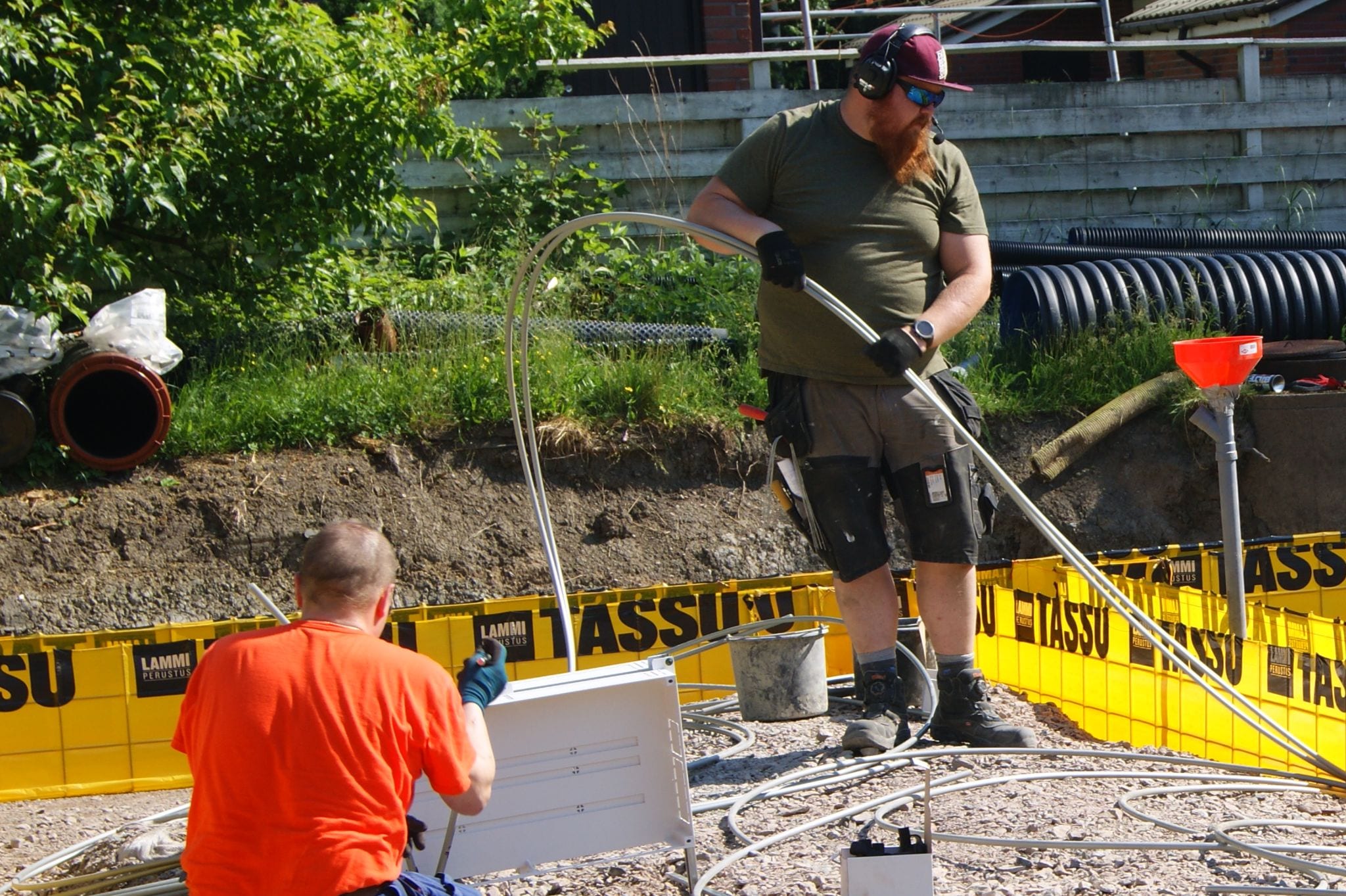 MAALÄMPÖ HELSINKI Siistiä jälkeä vain yhdessä asennuspäivässä. Aktivoimme kohteessa kaiken kaikkiaan 18 energiapaalua, joista saadaan lämmitystehoa peräti 30 wattia paalutusmetriltä. Kohteen paalutussyvyydet olivat keskimääräisesti 11 metriä. Tuolloin aktivoituja paalumetrejä on kohteessa yhteensä noin 200 metriä. Kohteeseen toteutettu järjestelmä tulee siis maalämpöpumpun avulla tuottamaan 6 kilowatin lämmitystehon – enemmän, kuin tarpeeksi omakotitalon lämmitykseen.
